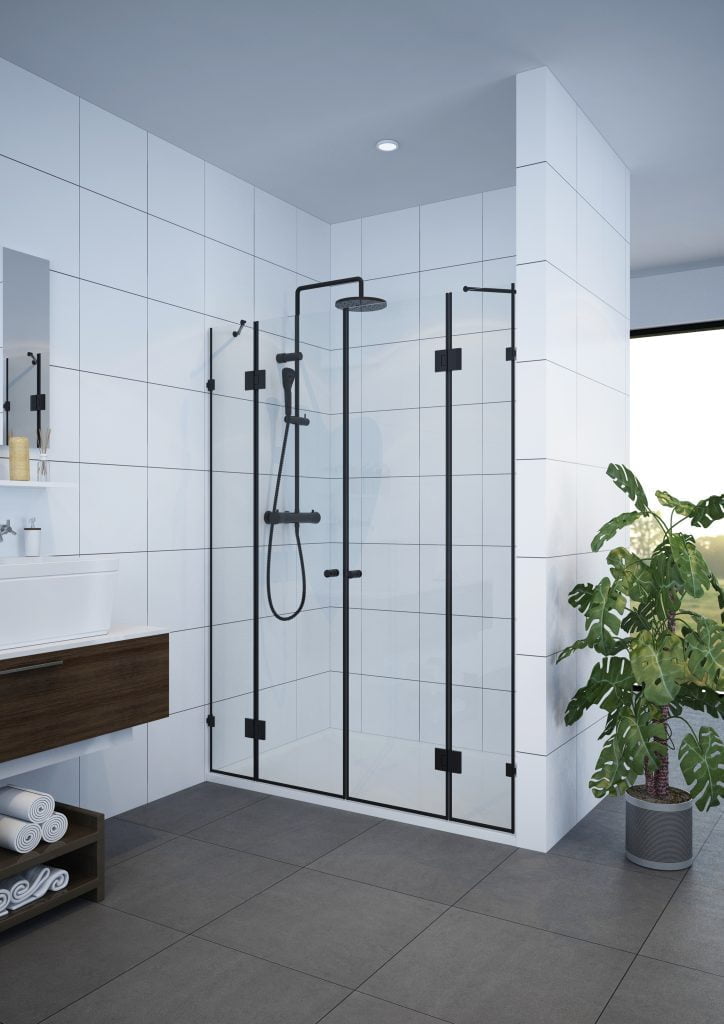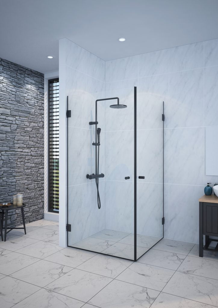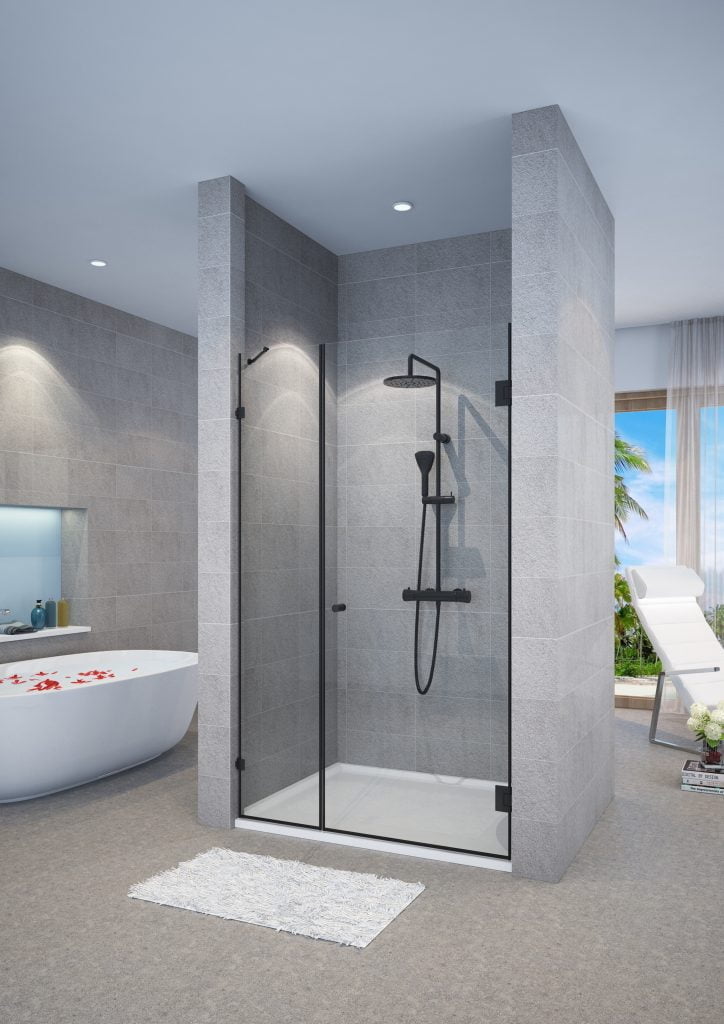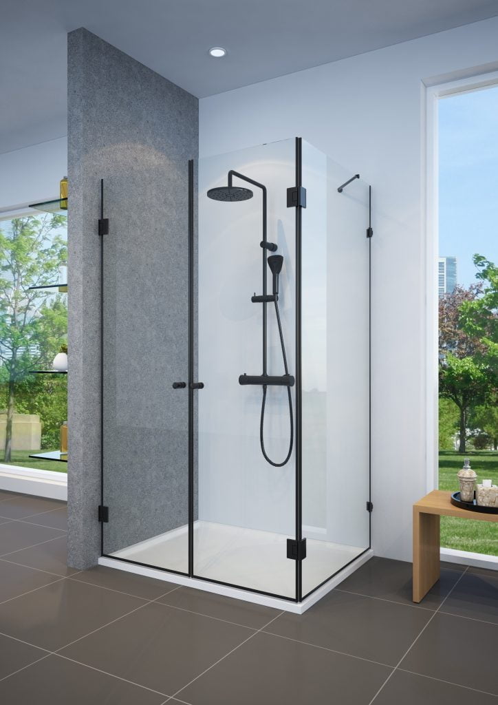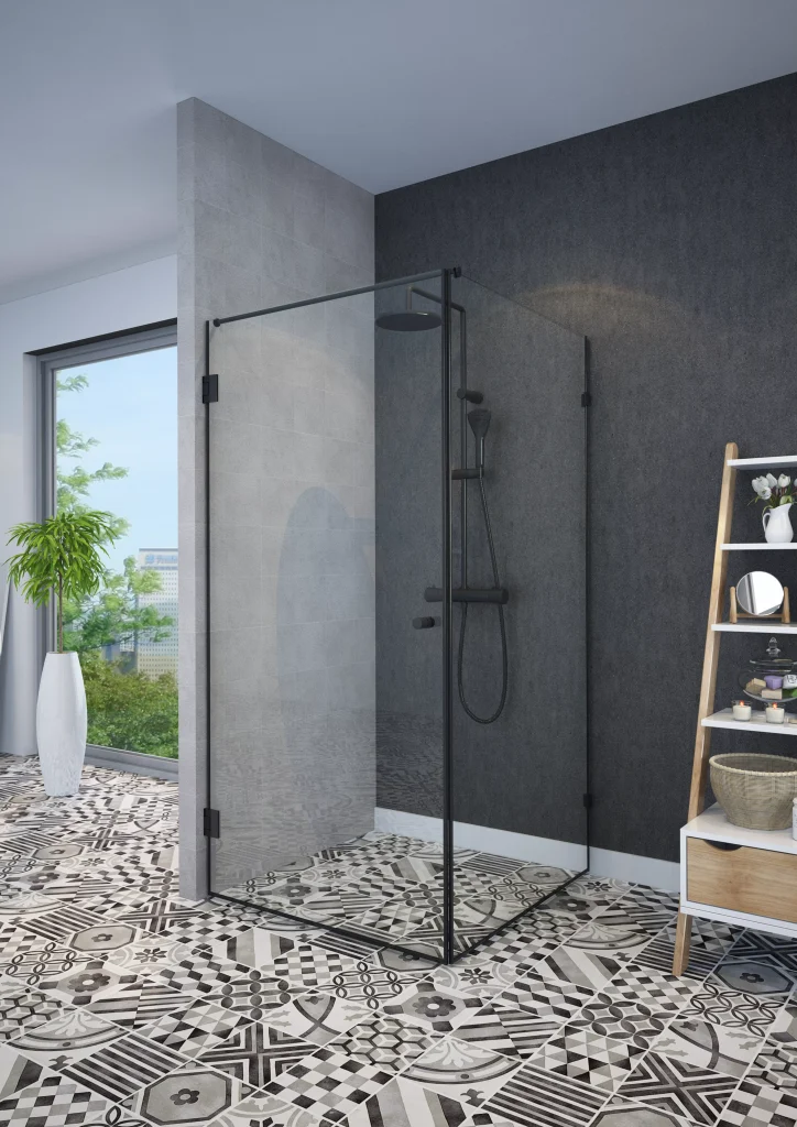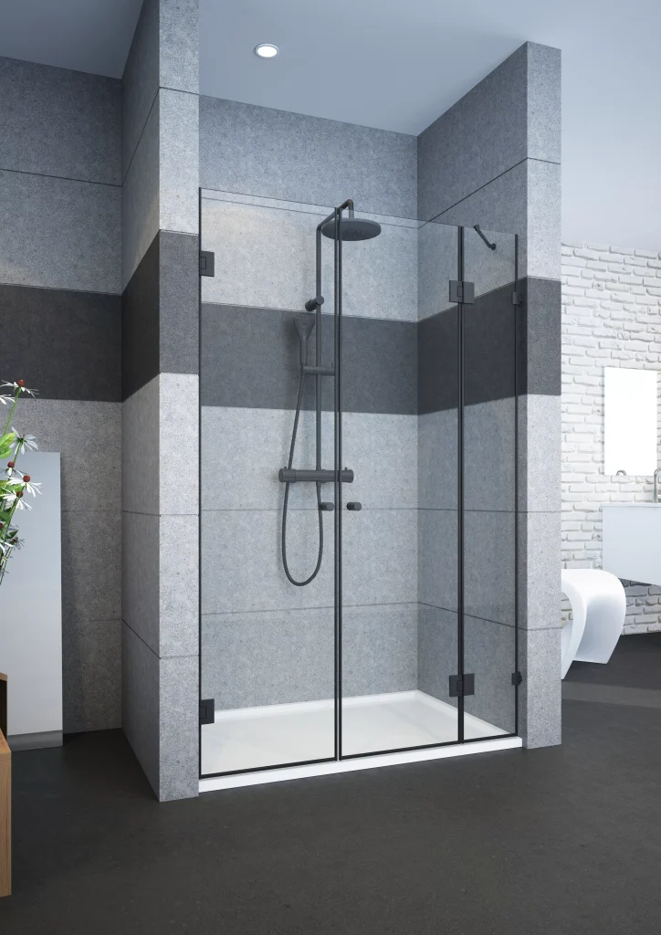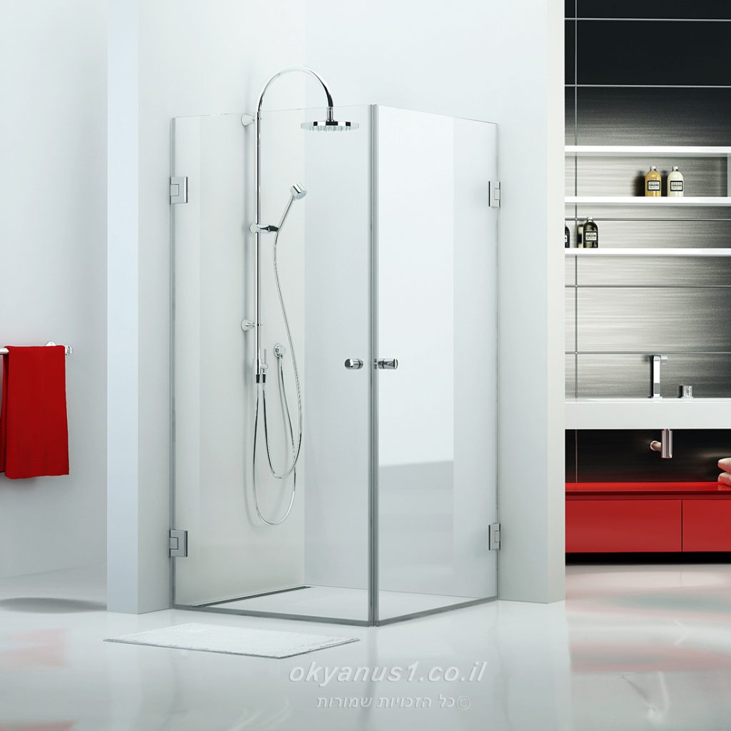 דגם: מקלחון פינתי MIKE-B תאור: 2 דלתות צירזכוכית: 8 מ"מ מחוסמתצבע: שחורסוג זכוכית: זכוכית שקופה, גרניט, צינצילה, פפיטהזכוכית חלבית, צבעונית, אסיד, מסטר קרה צירי ניקל באיכות מעולה למניעת החלדה.מגבי סיליקון לאטימה מירבית.סגירת הדלתות באמצעות מגנט. ניתן להזמין בכל גודל בהתאם לדרישת הלקוח.