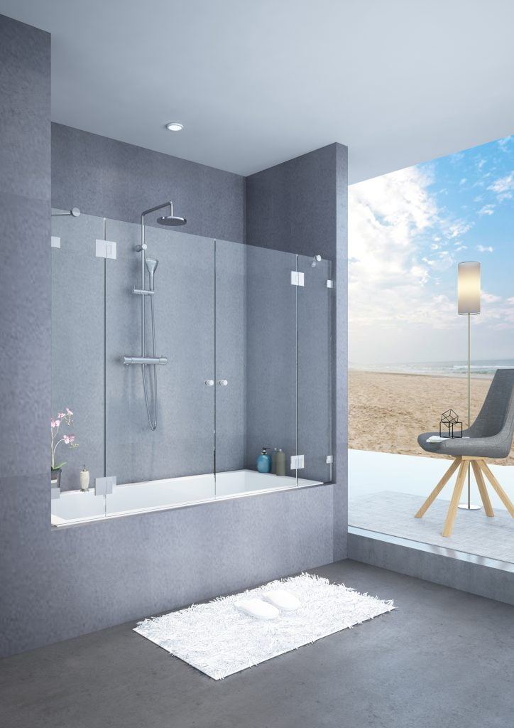 2 דלתות ציר + 2 דפנות קבועות ניתן להזמין במידות 140-200 ס"מ ובגובה עד 150 ס"מ צירי ניקל איכותיים ביותר למניעת החלדה.מגבי סיליקון לאטימה מלאה.